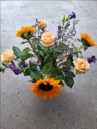 Iedere zondag staat er weer een mooi boeket bloemen in de Oase, dat na afloop van de kerkdienst naar een gemeentelid gebracht wordt als een blijk van medeleven en als een groet uit de gemeente: